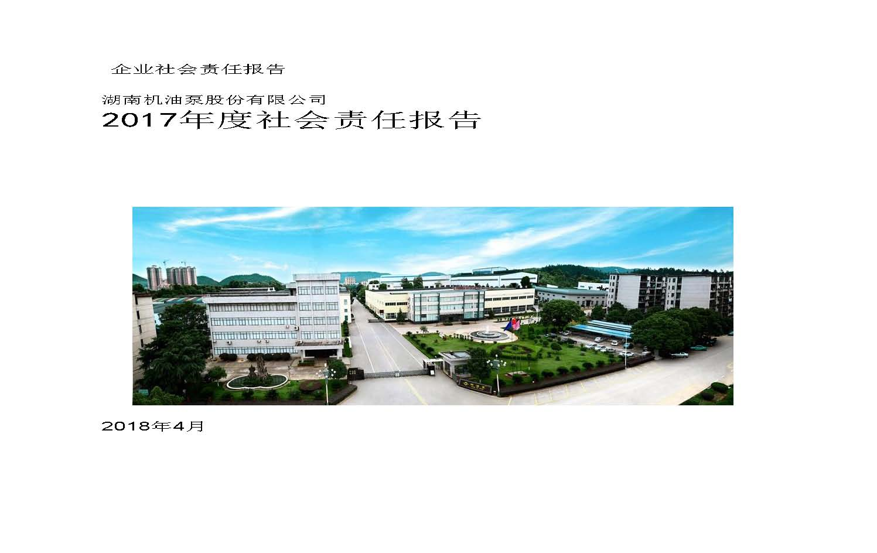 湖南機(jī)油泵股份有限公司 2017年度社會責(zé)任報告